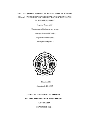 Setyaningsih, Setyaningsih (2023) TUGAS AKHIR: Analisis Sistem Pemberian Kredit pada PT. Bank BKK Demak (perseroda) Kantor Cabang Karangawen Kabupaten Demak. Diploma thesis, STIM YKPN Yogyakarta.