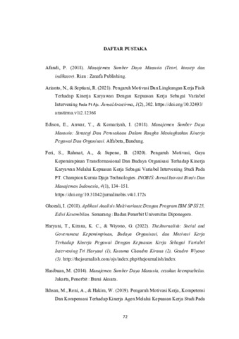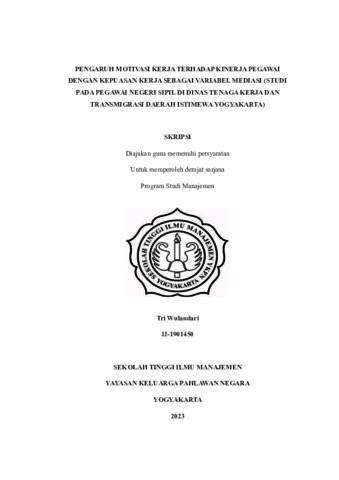 Tri, Wulandari (2023) SKRIPSI: Pengaruh Motivasi Kerja terhadap Kinerja Pegawai dengan Kepuasan Kerja sebagai Variabel Mediasi (Studi pada Pegawai Negeri Sipil di Dinas Tenaga Kerja dan Transmigrasi Daerah Istimewa Yogyakarta). Masters thesis, STIM YKPN Yogyakarta.